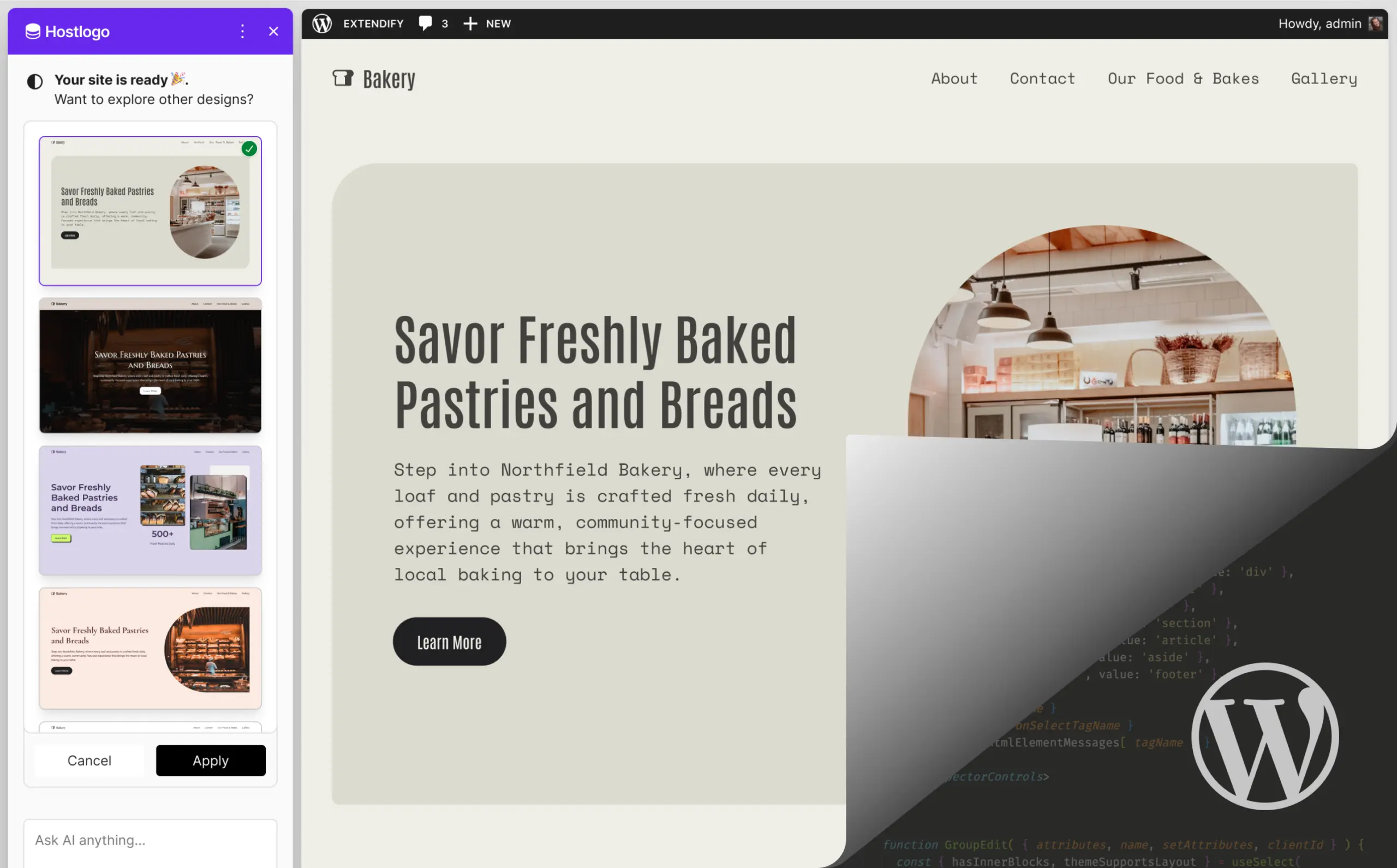 Empower your hosting customers to create beautiful, professional-looking websites in minutes using the latest AI technologies natively in WordPress.