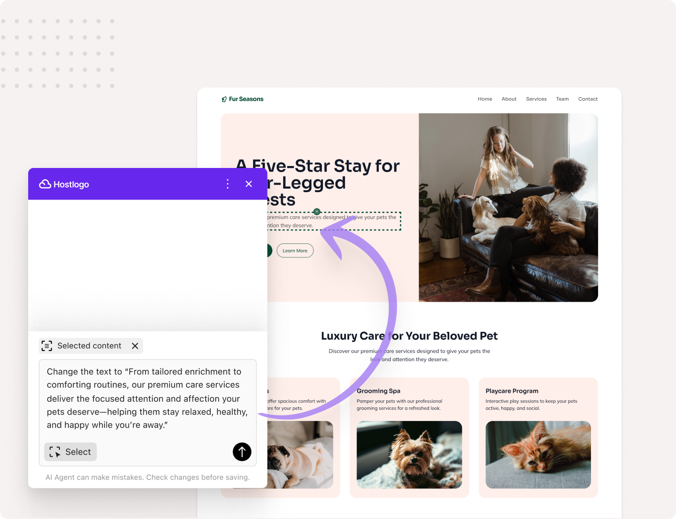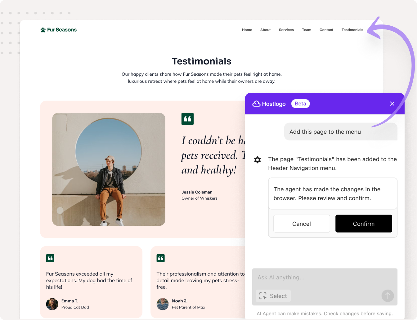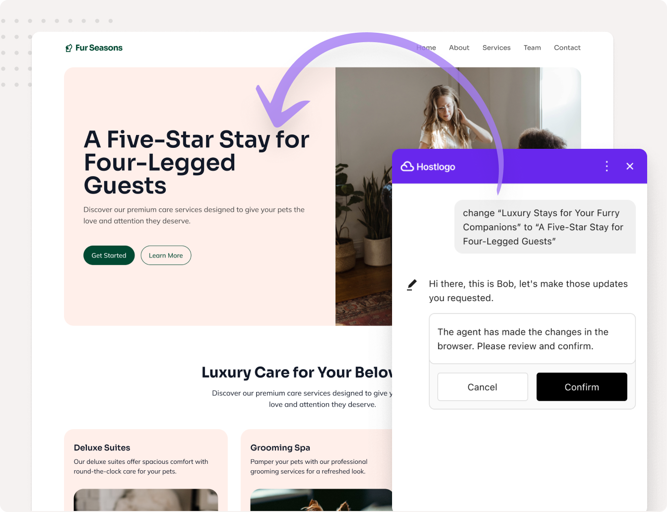 Team of AI Agents helps your customers update and manage their websites through natural language — reducing churn, boosting engagement, and making your hosting plan indispensable.